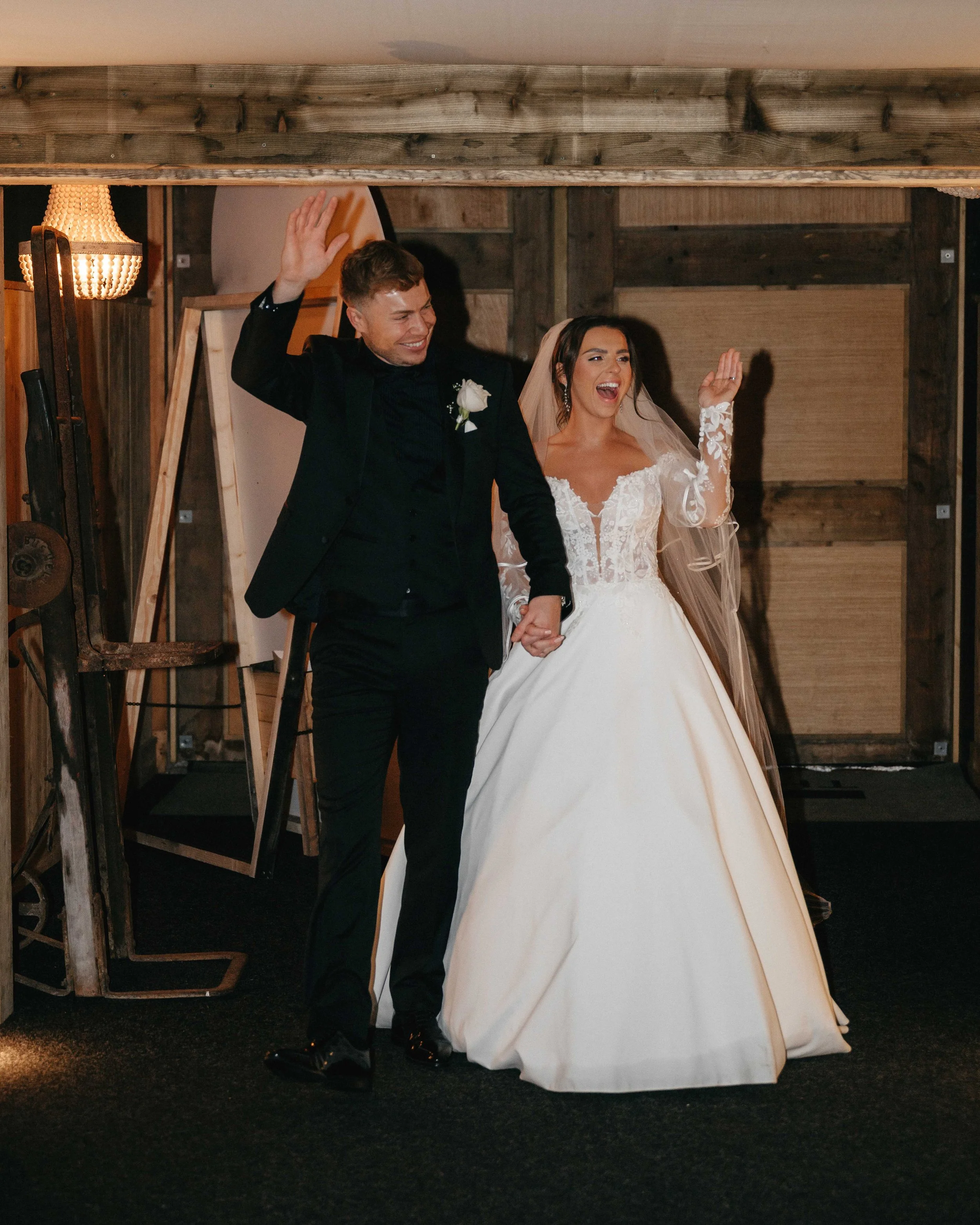 The already-raucous crowd turned it up to 11 when the bride and groom were announced into the room.